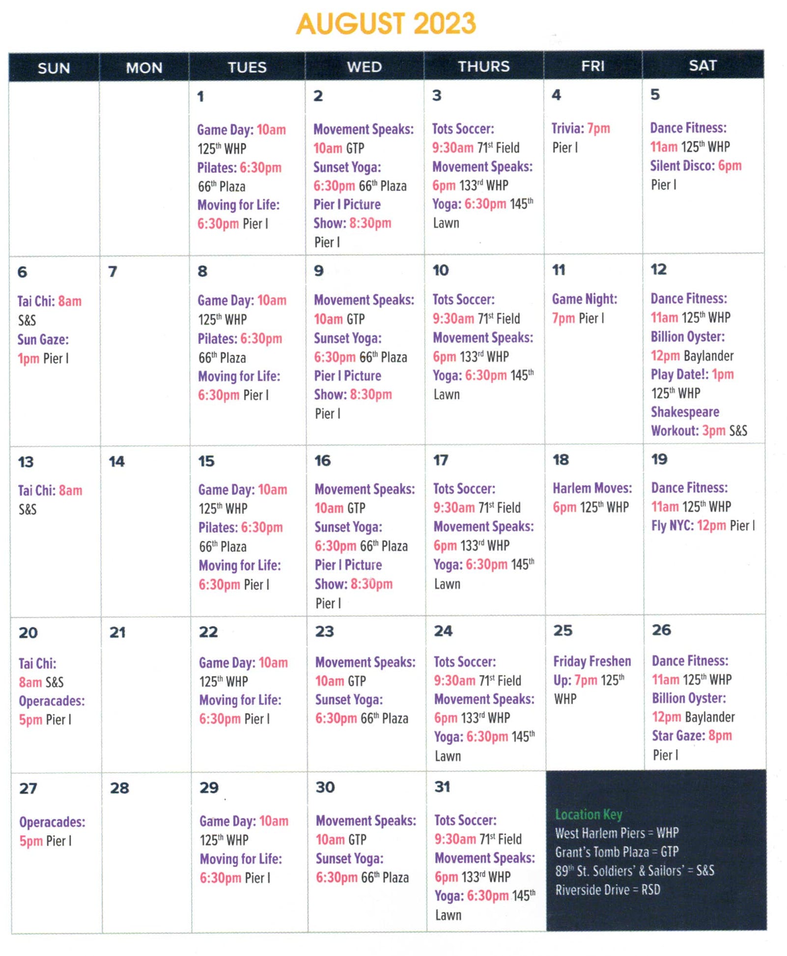 2023 DAILY SCHEDULE
